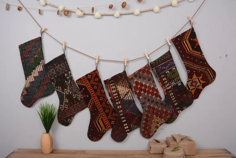 Festive Kilim Christmas Ornaments Stocking, Boho Holiday Stocking