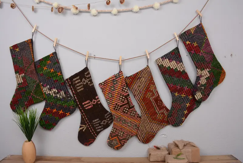 Festive Christmas Ornaments Pattern, 7-Inch Wide Holiday Stocking