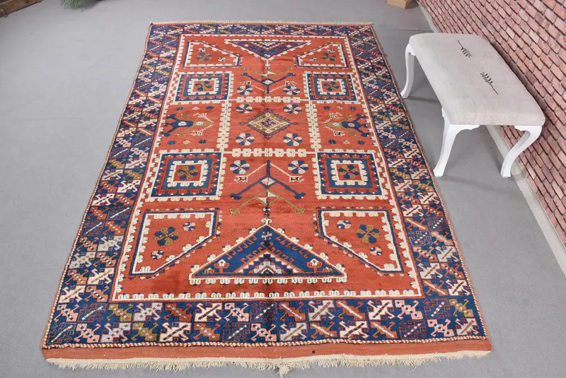 Elegant Orange & Blue Persian Rug, 6.2x10.1 ft