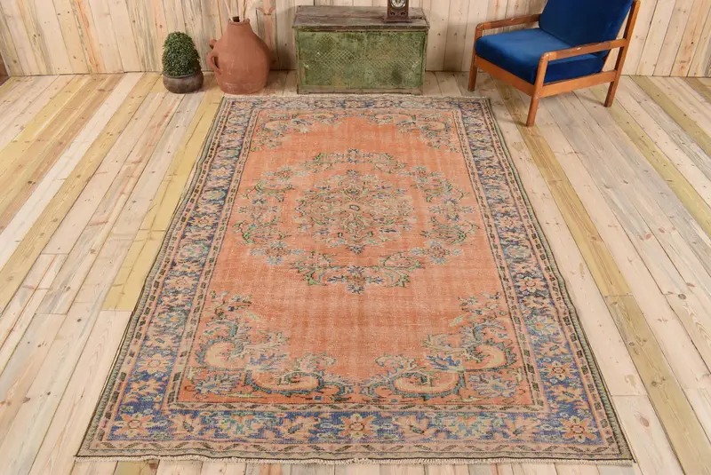 Vibrant Orange & Blue Ikat Rug, 6,2x9,1 ft