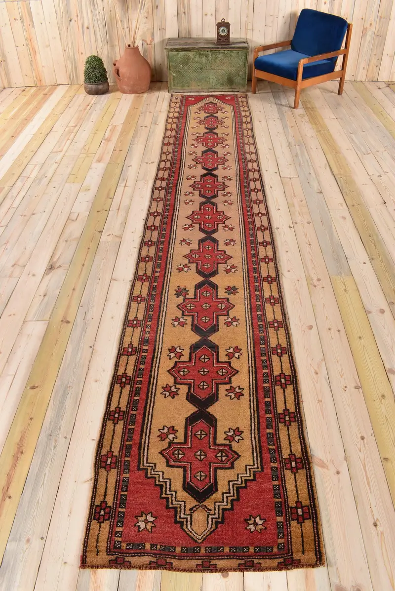 Red & Yellow Patchwork Rug, 2,8x15,9 ft Chic Decor