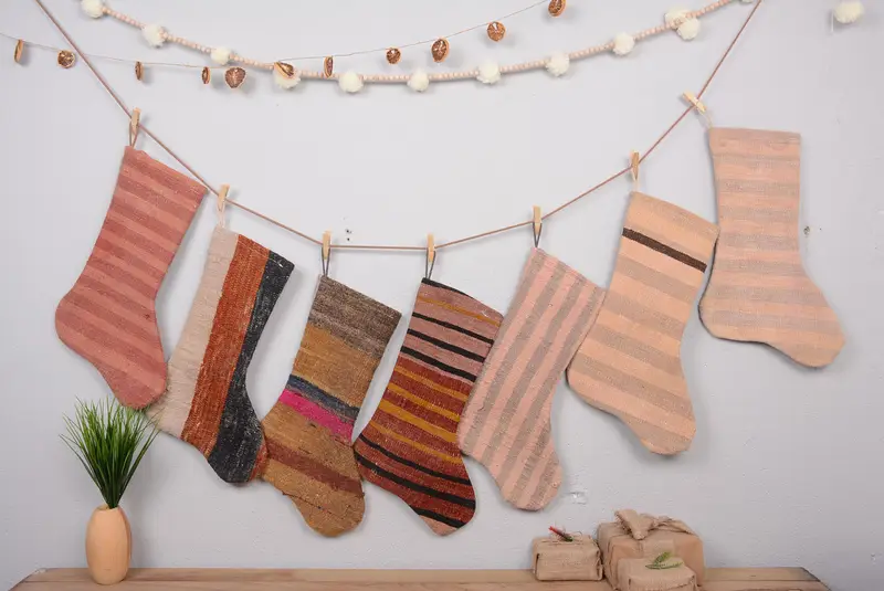 Eco-Friendly Kilim Christmas Stocking, Unique Ornament Pattern Stocking