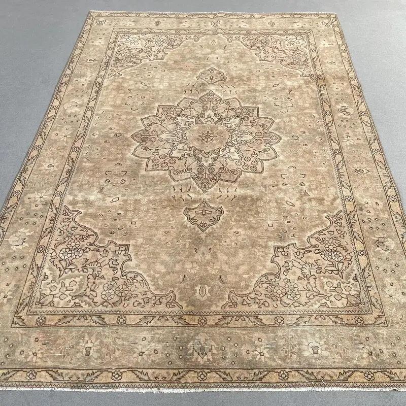 Brown & Orange Rug, 6,8x9,7 ft Botanical Design