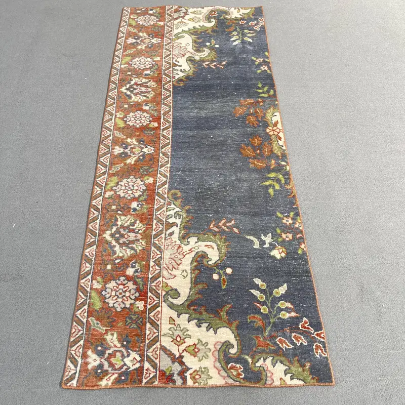 Blue Persian Rug, 2.6x6.6 ft with Orange Accents