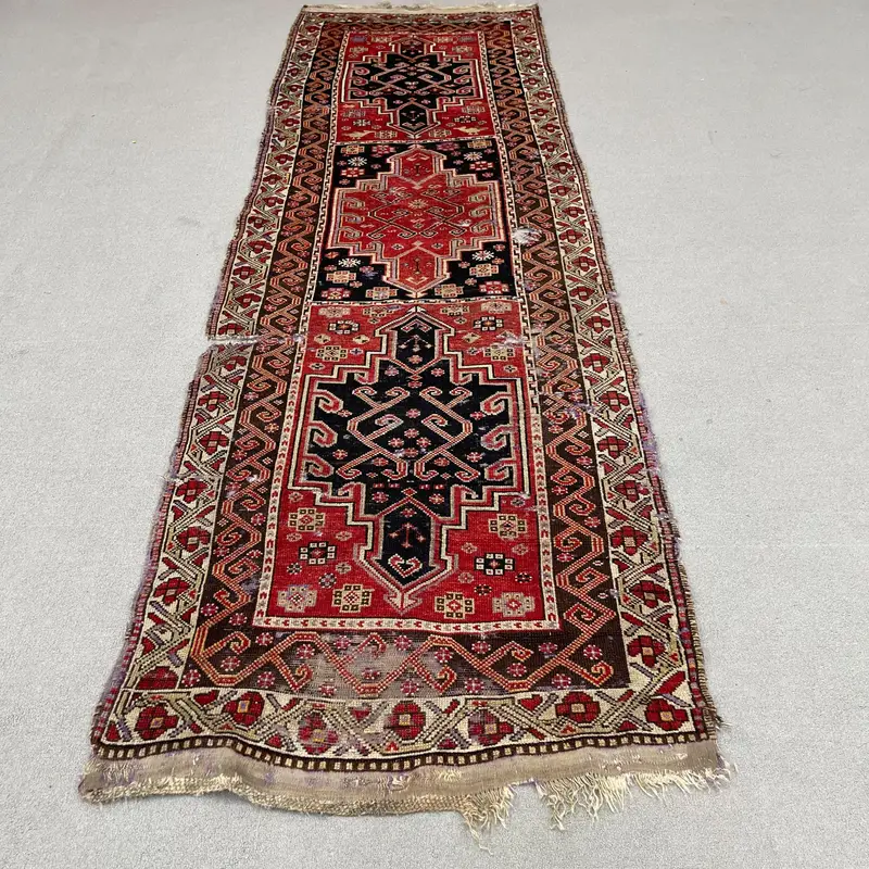 Red and Blue Southwestern Rug, 3.3x10.2 ft Chic Decor