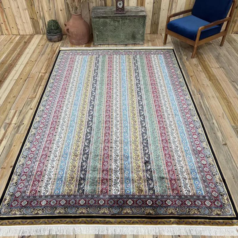 Rainbow Ikat Rug, 6.4x9.9 ft Vibrant Decor