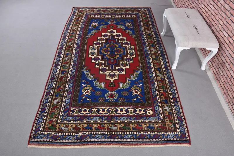Blue Ikat Rug, 5,3x9,6 ft with Red Accents