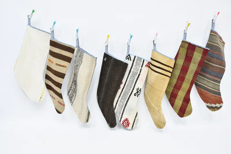 8-inch Christmas Ornaments Pattern Stocking, Unique Kilim Stocking
