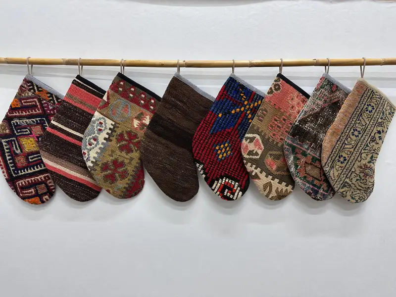 Festive 7-inch Christmas Stocking, Ornament Patterned Holiday Stocking