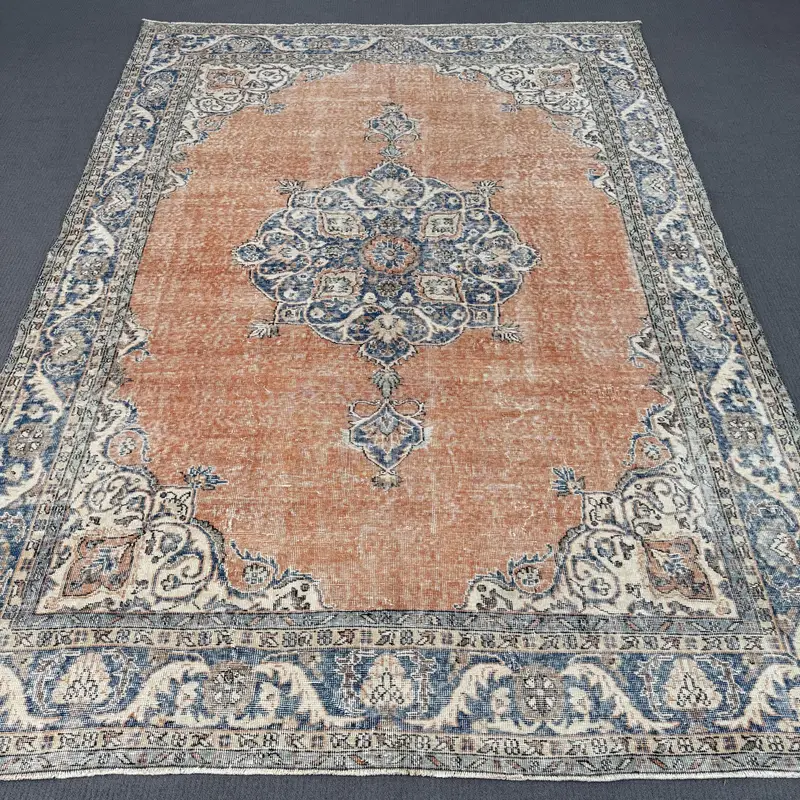 Orange & Blue Abstract Rug, 7x9 ft Vibrant Decor