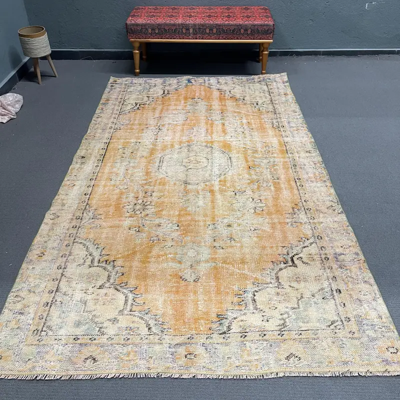 Vibrant Orange & Green Rug, 5,2x8,9 ft Chic Check Design