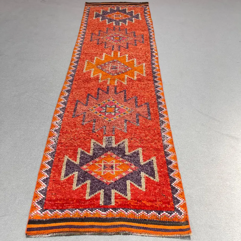 Red & Purple Rug, 3,1x11,2 ft Elegant Solid Design