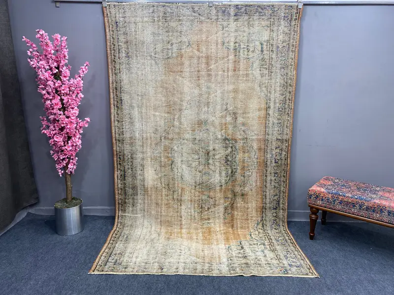 Orange & Beige Abstract Rug, 5.3x8.7 ft Chic Decor