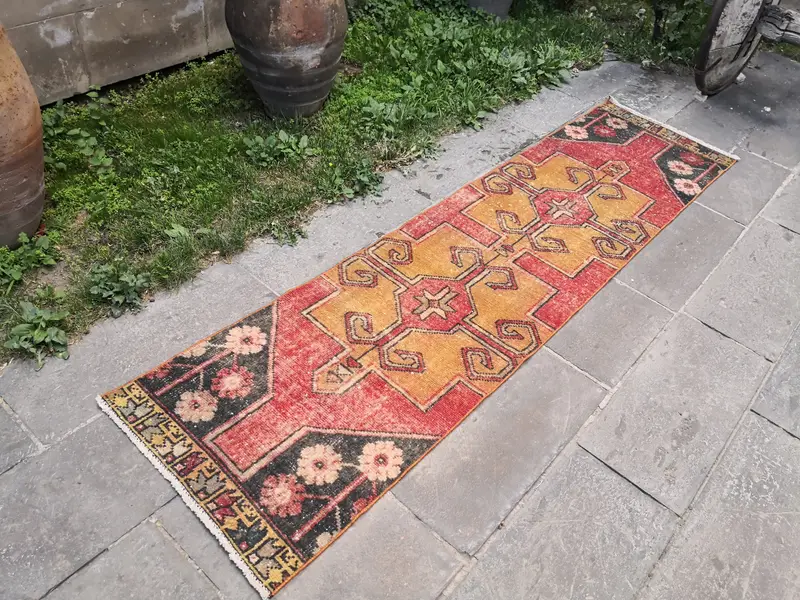 Red Oriental Rug, 2x8,33 ft Bronze Accent