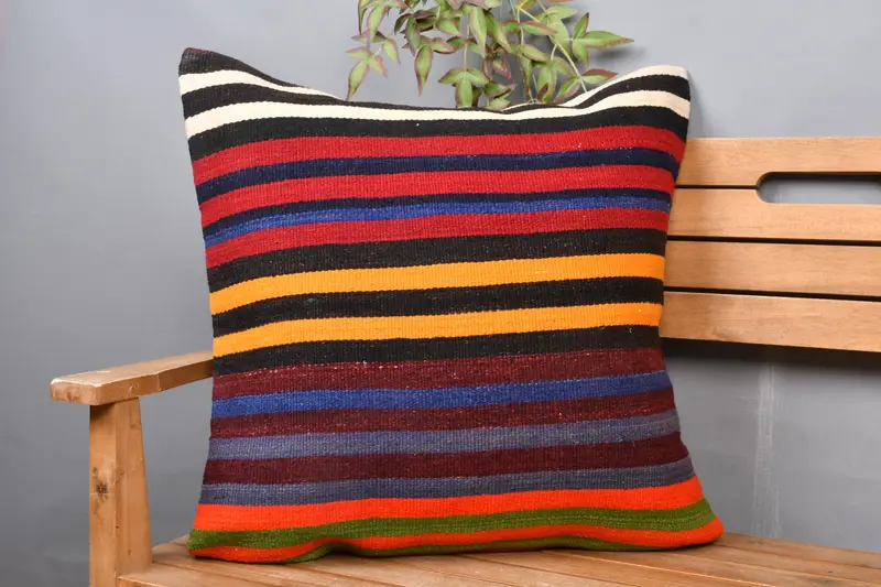 Blue & Red Striped Throw Pillow, Embroidered Vintage Throw Pillow