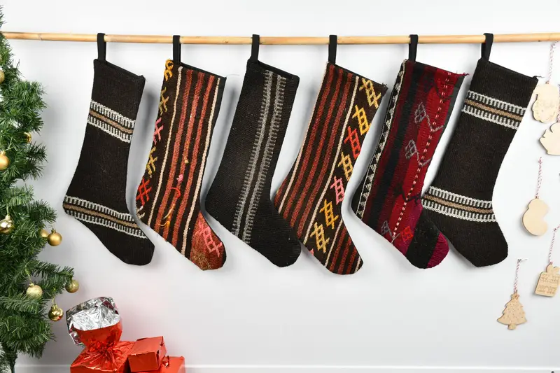 8-Inch Kilim Christmas Ornament Stocking, Festive Holiday Decor