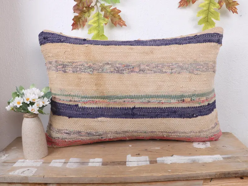 Beige & Bronze Striped Throw Pillow, Versatile Rectangle Pillow