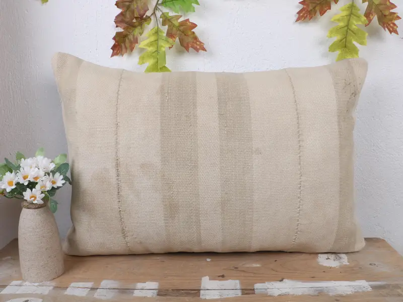 Gray Striped Throw Pillow, Embroidered Rectangle Pillow with Zipper