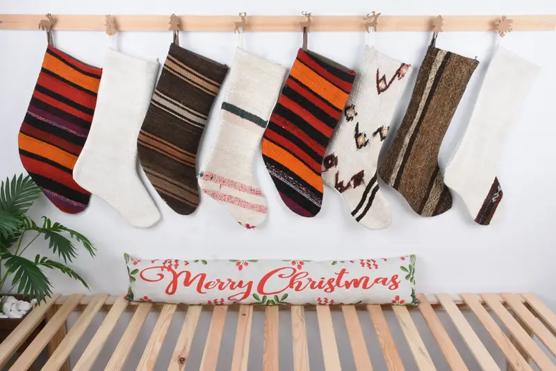 Christmas Ornaments Pattern, 8 Inch Wide Kilim Christmas Stocking
