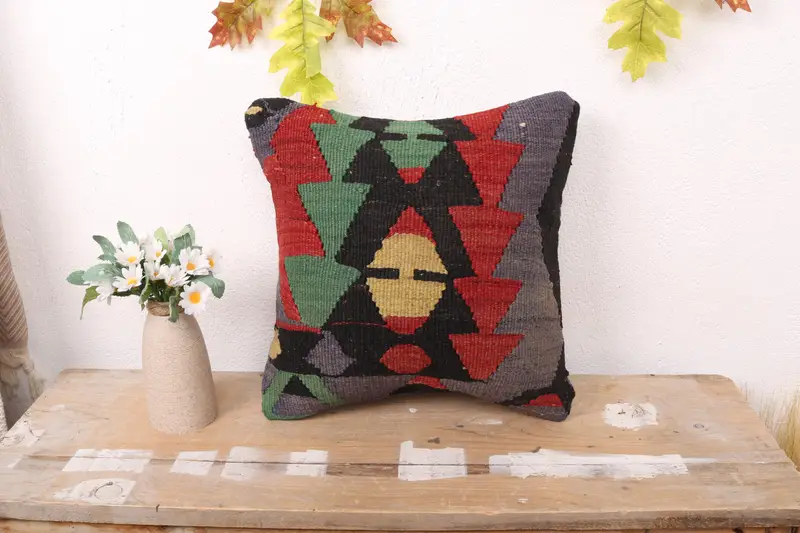 Green & Red Southwestern Throw Pillow, Vintage Embroidered Cushion