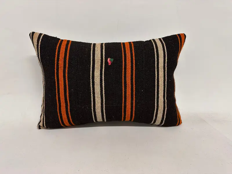 Handmade Brown & Orange Embroidered Rectangle Throw Pillow, Vintage Throw Pillow