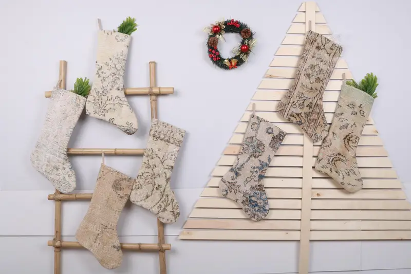 Festive Kilim Christmas Stocking, 22 Inch Ornamental Holiday Stocking