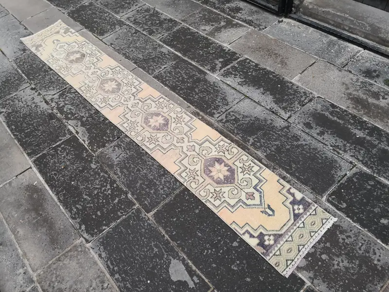 1,25x9,17 ft Rug, Gray with Rose Gold Oriental Accents