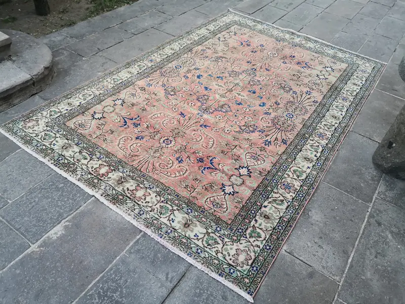Rose Gold Oriental Rug, 6,08x8,33 ft Blue Accent
