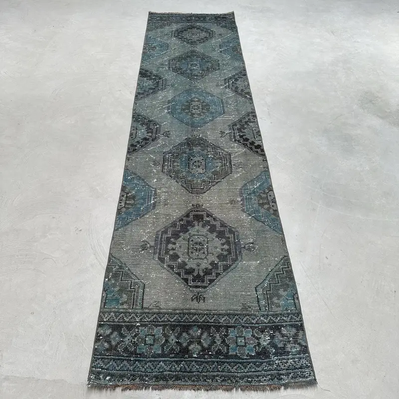 Green & Blue Patchwork Rug, 2,7x10,6 ft Chic Decor