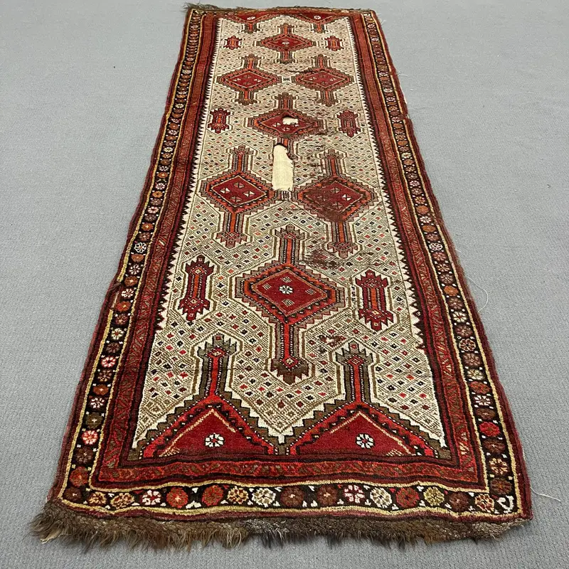 Elegant Beige & Red Rug, 3,9x11 ft Polka Dot Design