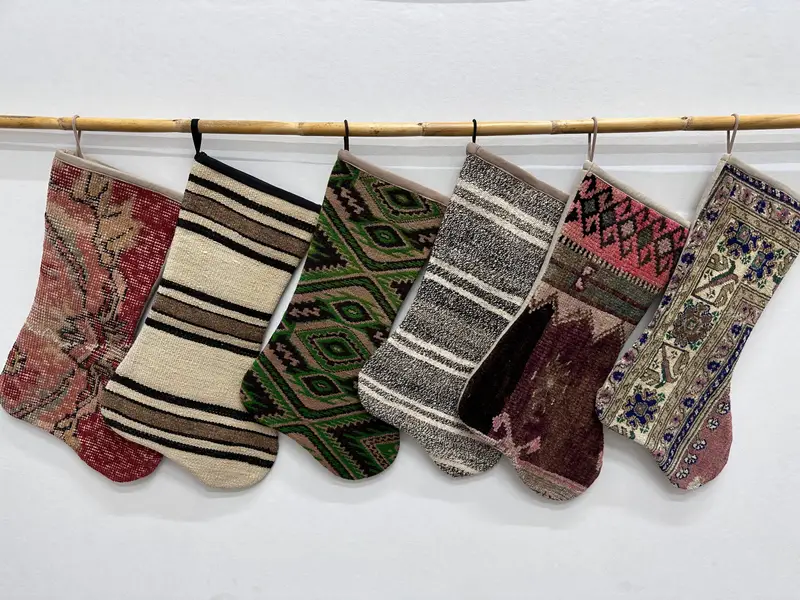 Festive 7-Inch Christmas Ornaments Pattern Stocking, Unique Xmas Stocking
