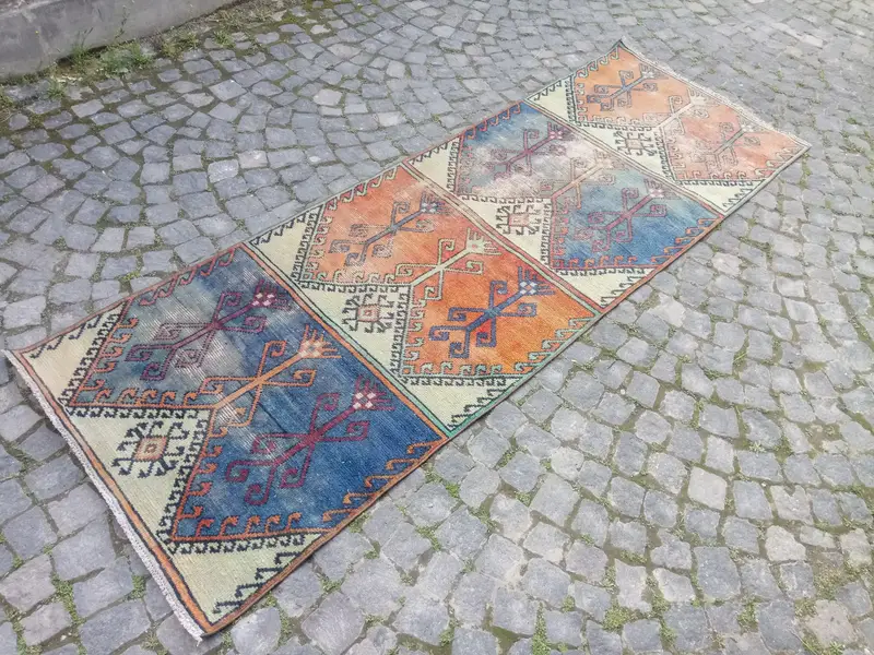 3,08x9 ft Rug, Vibrant Orange & Blue Oriental Design