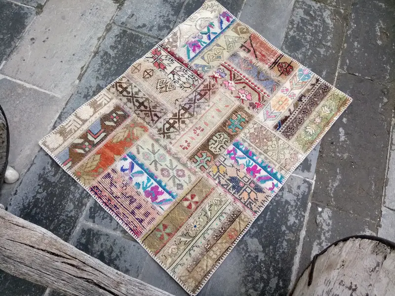 Gray & Blue Patchwork Rug, 3x3.83 ft Elegant Decor