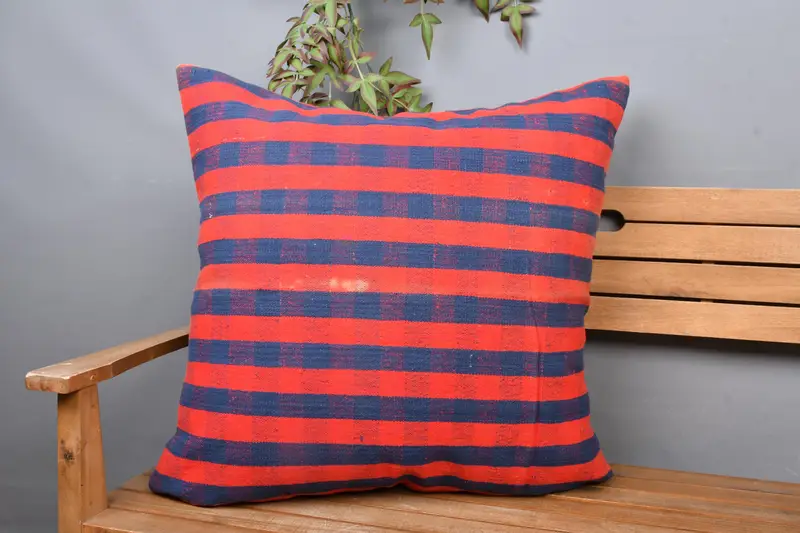 Red & Bronze Striped Throw Pillow, 28x28 Embroidered Cushion