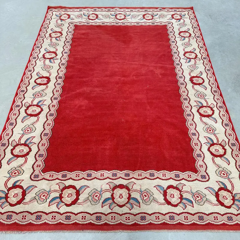 Red & Beige Rug, 5,6x7,8 ft Geometric Floral Design
