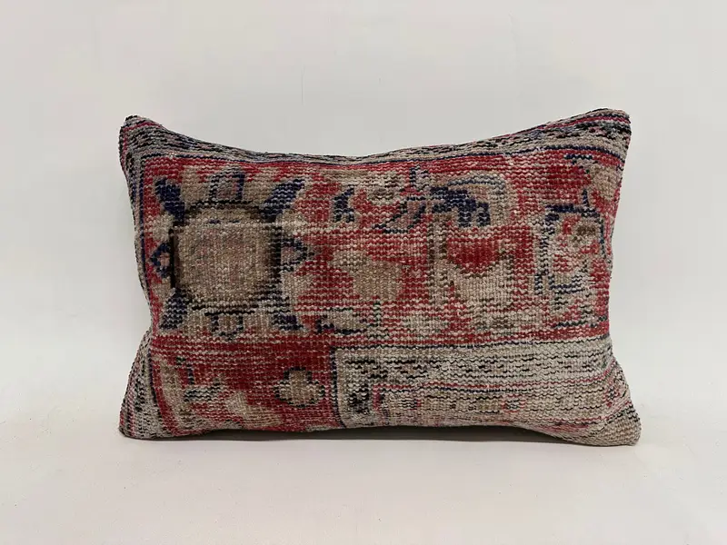 Red Southwestern Embroidered Pillow, 16x24 Handmade Throw Pillow