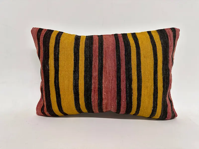 Brown & Red Striped Throw Pillow, 16x24 Handmade Cushion