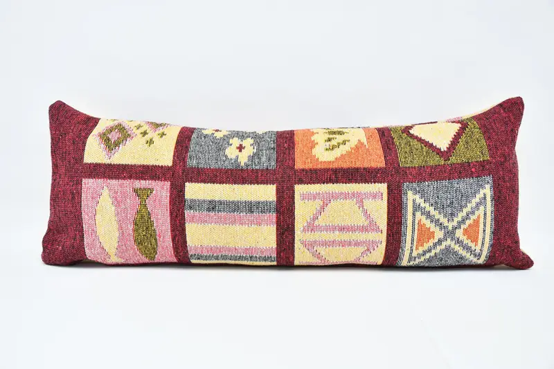 Red Southwestern Embroidered Throw Pillow, Vintage Handmade Cushion