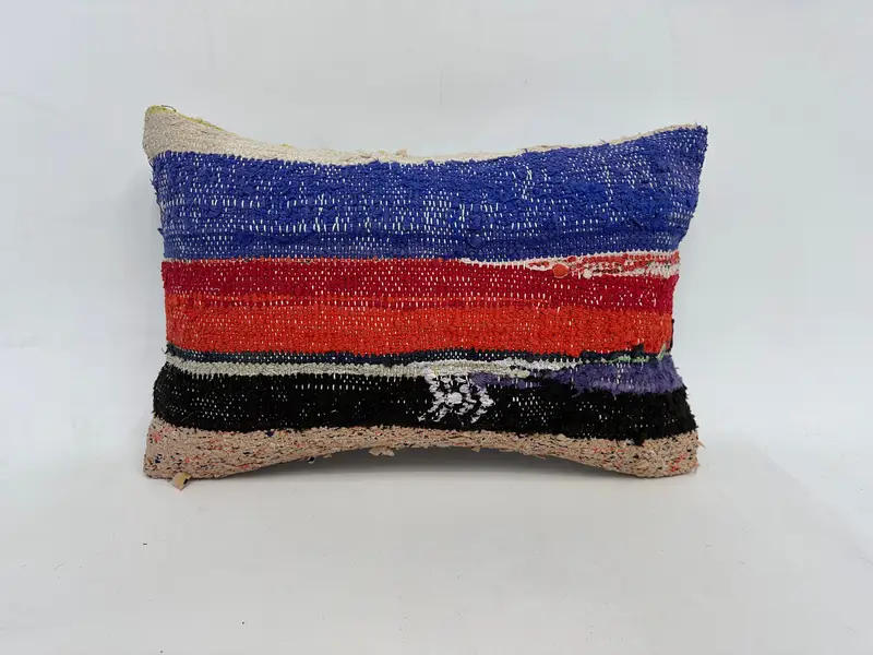Red & Bronze Striped Throw Pillow, Handmade Linen Cushion