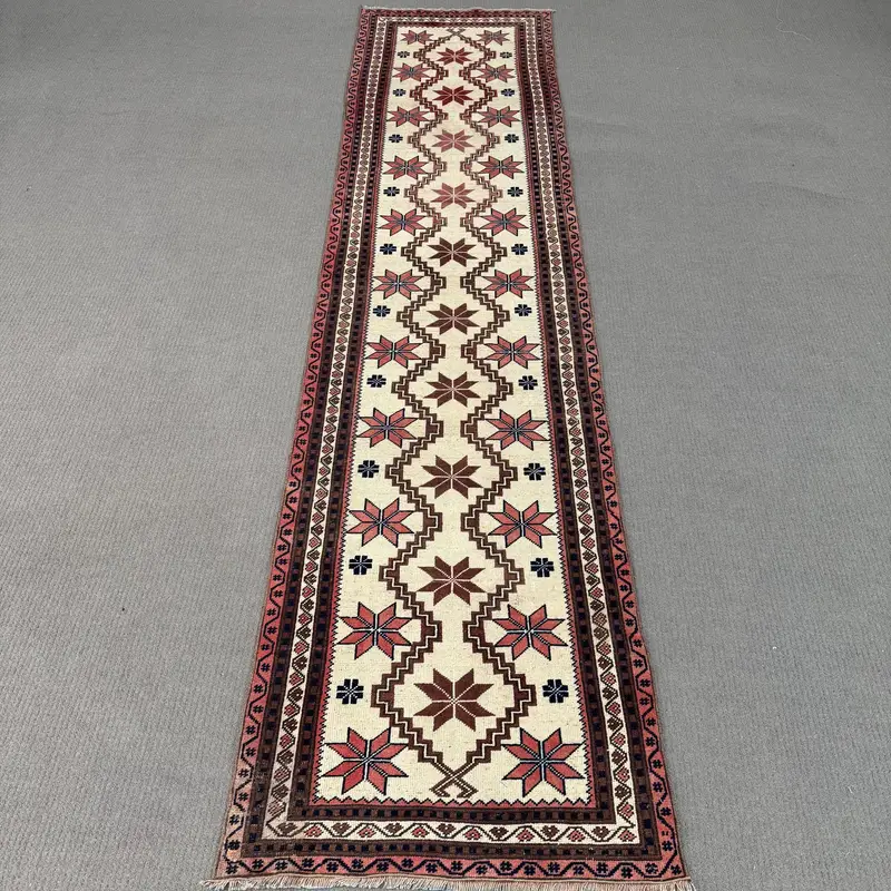 Elegant Beige Rug, 2.6x10.6 ft Abstract Design