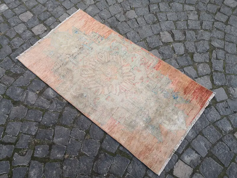 Orange, Gray Floral Rug, 2.08x4 ft Chic Decor