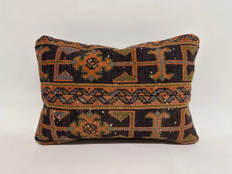 Blue & Orange Patchwork Throw Pillow, Handmade Rectangular Pillow