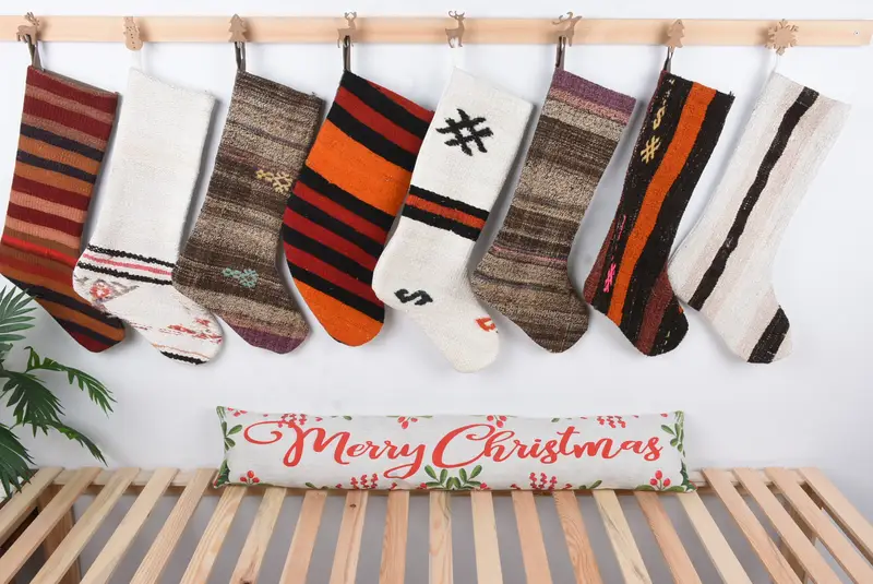 Neutral Kilim Christmas Stocking, 8 Inch Wide Holiday Decor