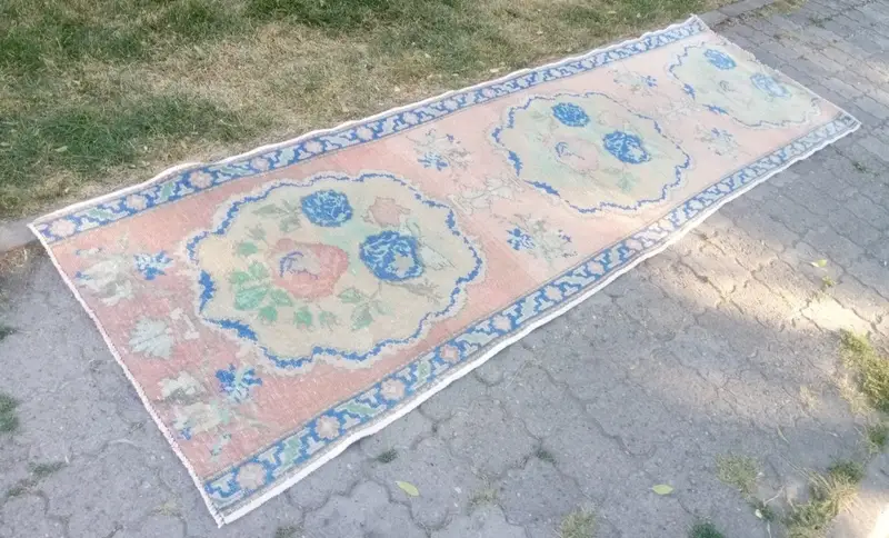 Blue Oriental Rug, 2,92x9,5 ft with Bronze Accents