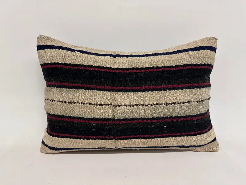 Beige & Black Striped Pillow, 16x24 Handmade Throw Pillow