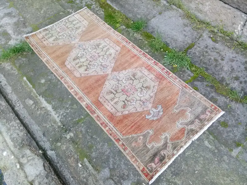 Orange Oriental Rug, 2.5x5.5 ft, Gray Accents