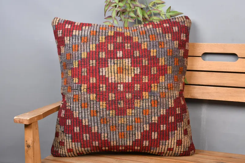 Blue & Red Embroidered Throw Pillow, Handmade Vintage Cushion