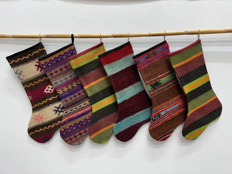 Festive 7-Inch Christmas Stocking, Ornament Patterned Holiday Decor