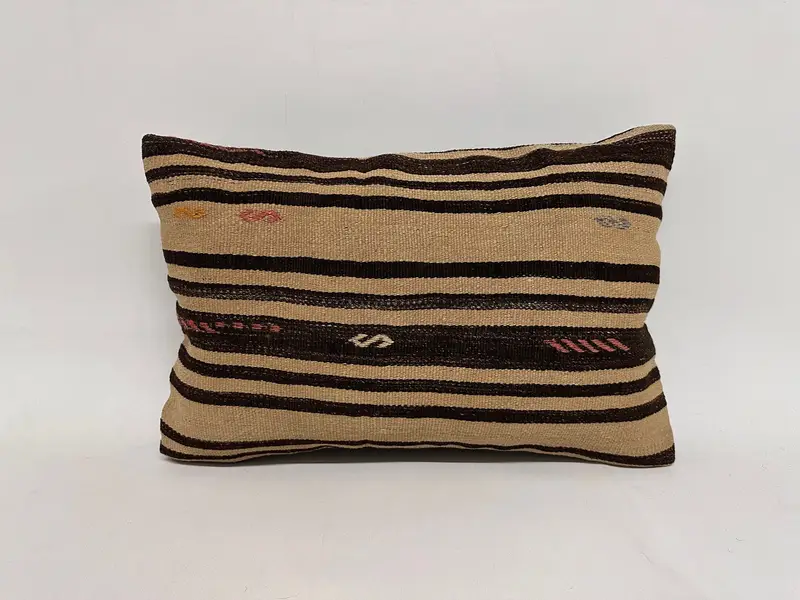 Embroidered Beige & Brown Stripe Throw Pillow, Handmade Pillow