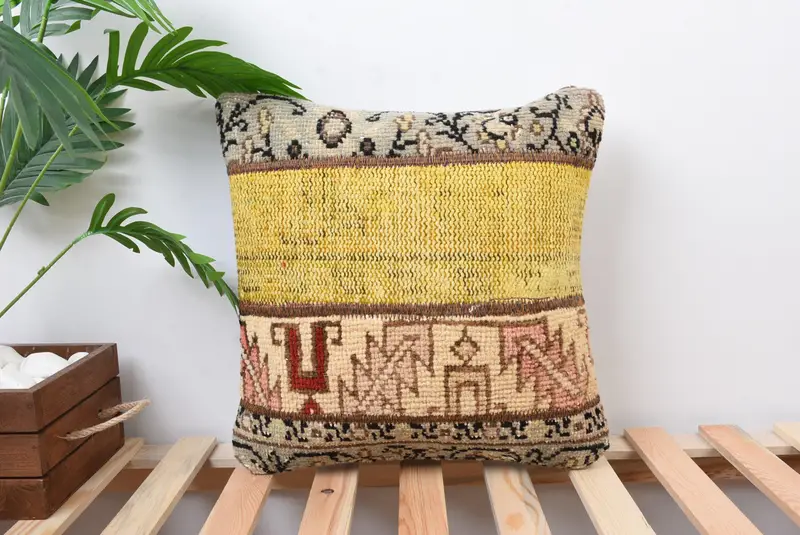 Embroidered Brown Patchwork Throw Pillow, Handmade Boho Pillow
